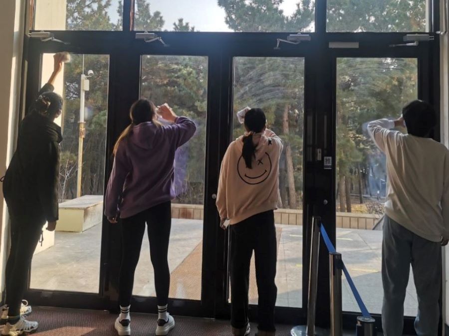 本次清洁劳动实践的活动地点为图东教学楼、图东环楼门口自行车摆放处以及KY开元集团官网门口宣传栏。学生按照学校相关要求,将图东教学楼、图东环楼处的电动车、自行车等交通工具进行合理有序摆放;对KY开元集团官网内宣传栏、储物柜、学院楼门口的玻璃门窗进行擦拭清洁。清洁工具由各支部自行进行整理,活动过程高效有序,清洁后的教学楼周围环境焕然一新。