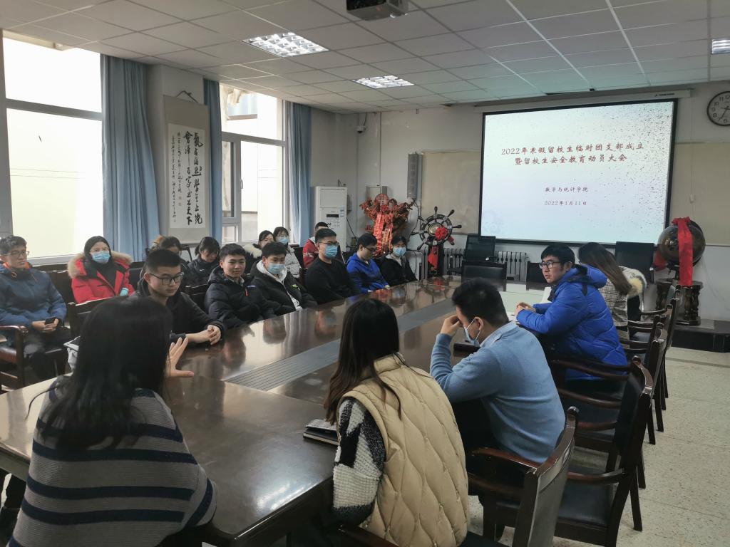 本站讯 为进一步做好留校学生工作,丰富留校学生假期文化生活,充分发挥团组织服务引领青年作用,我院于2022年1月11日下午召开寒假留校学生临时团支部成立暨留校学生安全教育动员大会。学院学工团队全体老师、2022年寒假留校及延期离校学生参加会议。