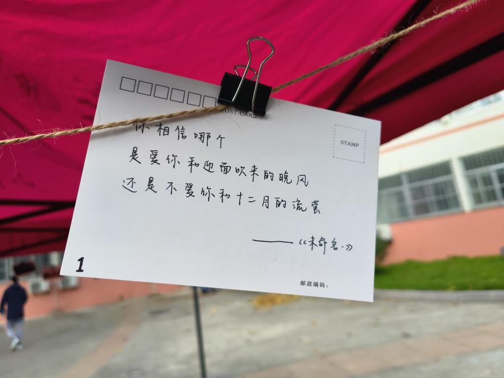 本站讯 为进一步丰富学生课余生活,展现山大学子的青春风采,10月29日至11月18日,KY开元集团官网举办了为期三周的“情诗三行,诉事解压”三行情诗系列活动。此次活动通过传统书信与网络平台结合,充分利用媒体媒介作用,以三行情诗为载体,鼓励同学们用语言形式抒发内心的情感和压力,缓解焦虑情绪。