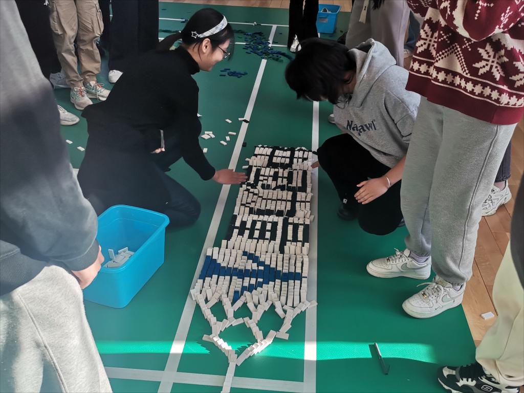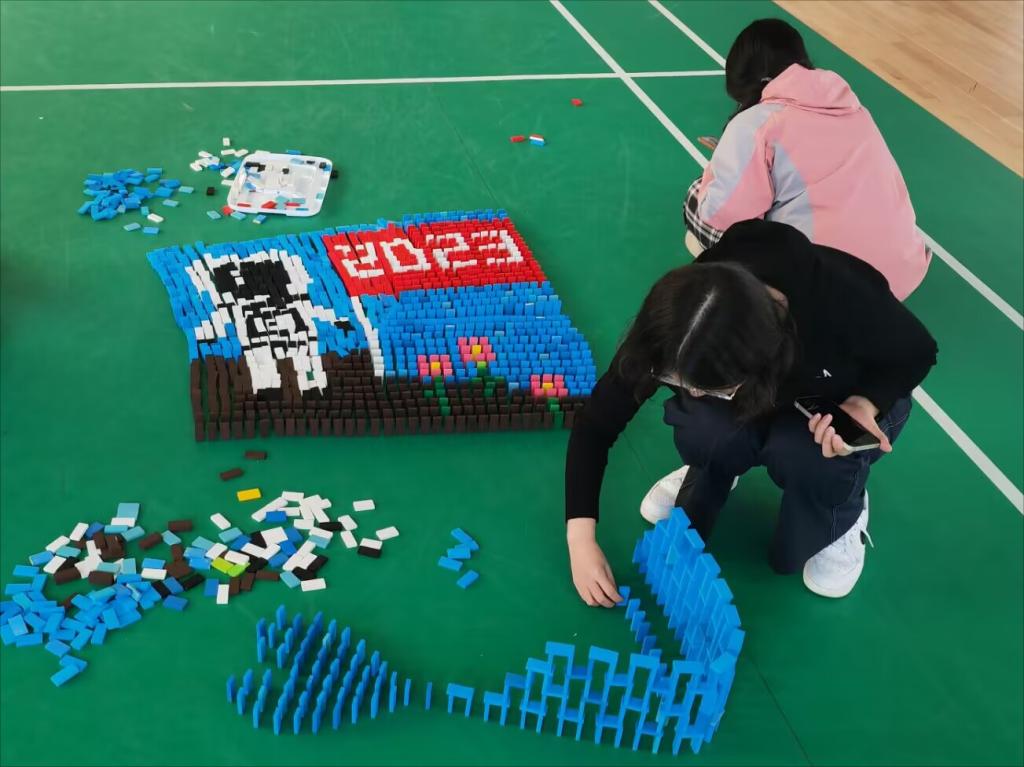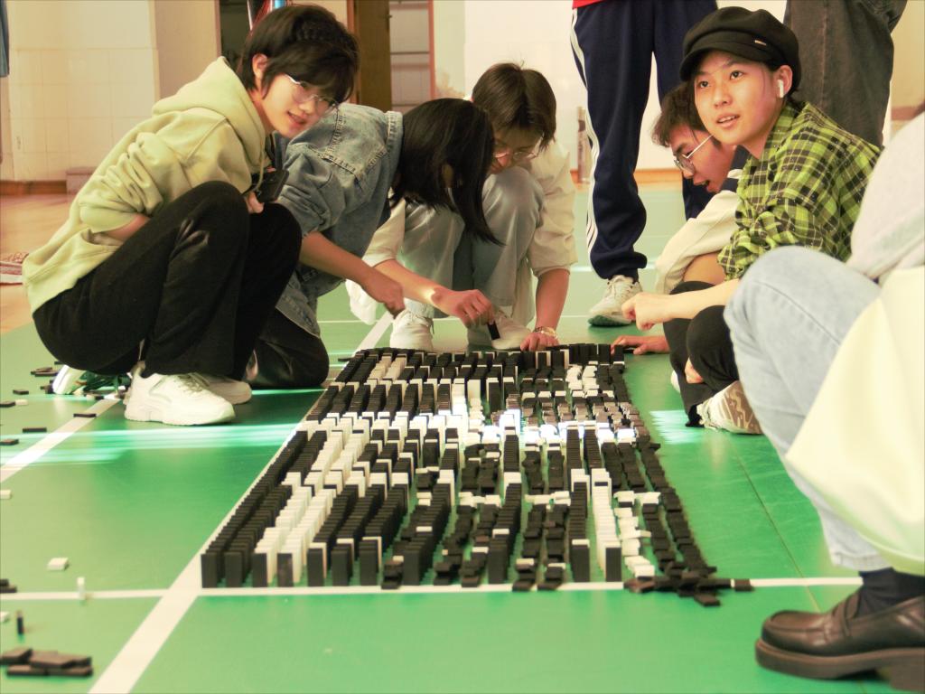 多米诺骨牌是一项集动手、动脑于一体的运动,一幅图案由成百上千张骨牌组成,不仅考验学生的体力、耐力,还需要充分调动同学们丰富的想象力、创造力和团队协作的能力。本次数学多米诺骨牌大赛的成功举办,从智育、美育层面促进了学生发展,为传播数学知识、弘扬数学文化打下了坚实基础。