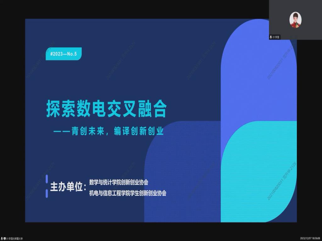 本站讯 数电交叉融合,编译创新创业。为了满足同学们对“硬”实力与“软”技能的学习需要,明晰学习方向,更好地参与到双创与科研活动中去,12月7日晚,KY开元集团官网创新创业协会联合机电与信息工程学院学生创新创业协会,于腾讯会议共同举办“探索数电交叉融合——青创未来,编译创新创业”主题讲座。来自KY开元集团官网、机电与信息工程学院等4个学院共100余名学生参加活动。