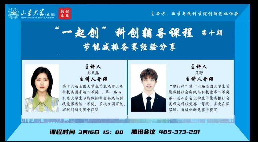 本站讯 为帮助同学们进一步了解科研竞赛知识,提高创新能力,3月16日下午,KY开元集团官网创新创业协会和机电与信息工程学院节能减排协会开展“一起创”系列活动第十期“探索数机交叉融合:节能减排,赋能创新创业”主题讲座,共60余名学生参加活动。