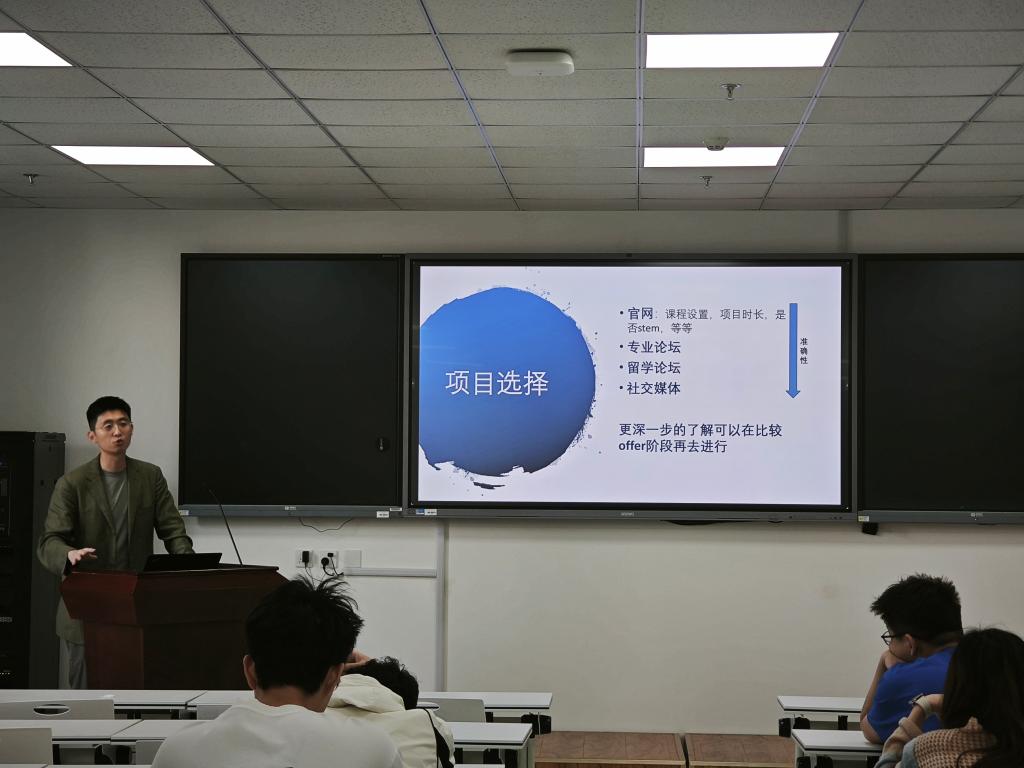 本站讯 为助力同学们提升留学申请竞争力,做好发展规划,5月16日下午,KY开元集团官网于北衡楼1420室举办第三十期“励志周末”活动之数统交叉学科留学申请策略分享会。本次活动邀请了芝加哥大学布斯商学院工商管理硕士彭秋迪担任主讲嘉宾。