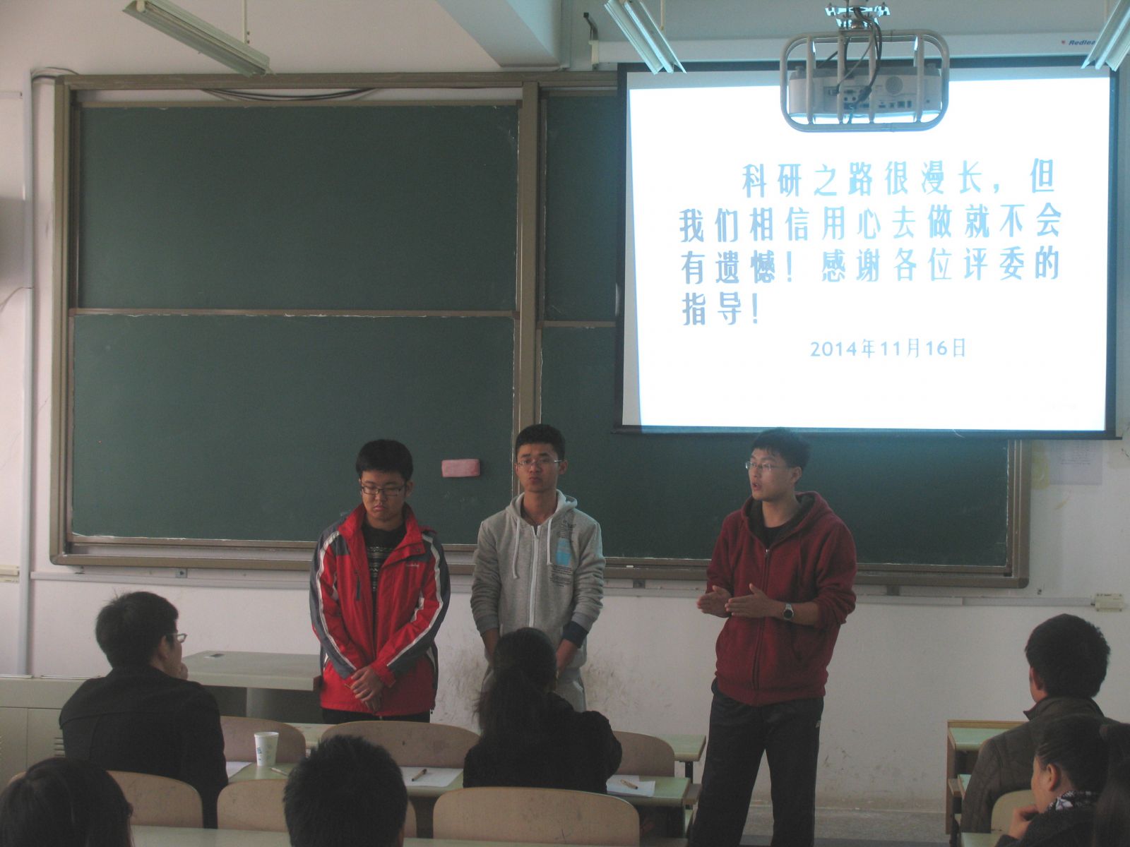 本站讯 2014年11月16日上午8:00,KY开元集团官网科研立项中期答辩会在图东环楼308和310成功举办。公共数学教学部主任赵华祥老师、数学与应用数学系主任孙华清老师、信息与计算科学系主任常洛老师、统计系主任杨丰凯老师、数学与统计实验中心主任曹祝楼老师、讲师袁海静老师、团总支书记陈昕老师、本科生科研秘书孙磊老师、辅导员程妍老师以及参与答辩的第九届科研立项团队参加了本次活动。
