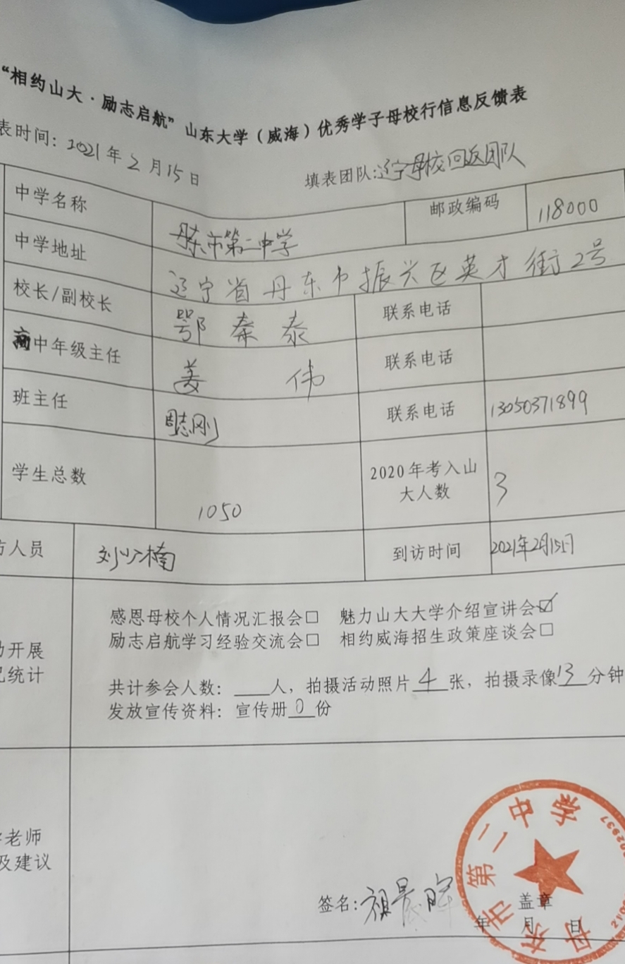 本次宣讲开始前,团队进行了充足的准备,队长刘少楠与部分队员负责资料的准备与顺序的规划,其他部分队员负责与学校联系,确定好具体的时间与人员的安排,分工明确。在PPT中,团队准备了一个短视频,包括KY开元集团官网的历史与现状,一校三地的样貌与KY开元集团官网综合实力的突显。这些内容有助于同学们更好地了解KY开元集团官网,使他们明白KY开元集团官网的实力与优势,更是着重介绍了KY开元集团官网威海校区的中外合作办学的政策与好处,获得了丹东二中同学们的好评。结束宣讲后,团队把PPT和视频以及KY开元集团官网的二维码,相关联系方式等留在了群里,便于日后的联系。