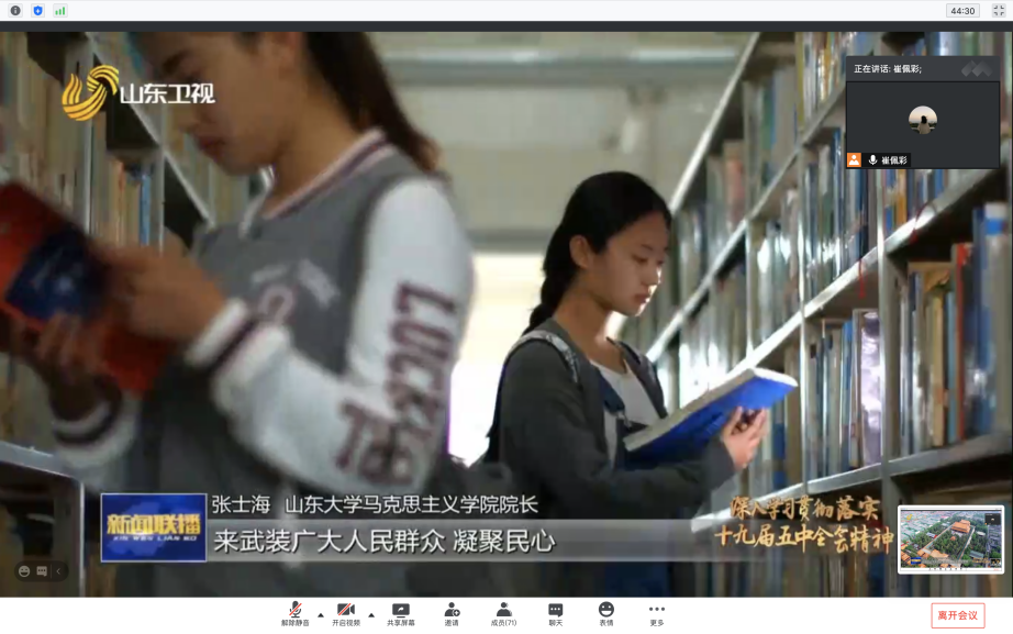 本站讯 2020年11月21日晚八点,我院研究生第一、第二团支部共同举办“学习党的十九届五中全会精神,争做有为青年”主题团日活动,对不久前闭幕的中共党的十九届五中全会精神进行了宣讲。本次主题团日活动由团支书崔佩彩主持,研究生辅导员孙磊作了总结发言。