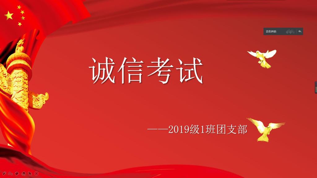 本站讯2020年6月18日下午2:30,KY开元集团官网2019级1班的同学通过腾讯会议的方式,召开了“诚信考试”教育班会。本次班会由班长崔永东、团支书陈姿言主持召开,1班全体同学参加。