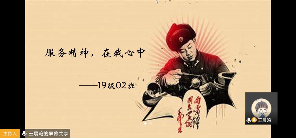 本站讯 2020年3月13日下午两点,KY开元集团官网2019级02班在就业委员王晨湾的带领下,积极开展了线上“观雷锋视频,学雷锋精神”学雷锋月志愿活动。活动由就业委员王晨湾举办并主持,2班全体同学参加。