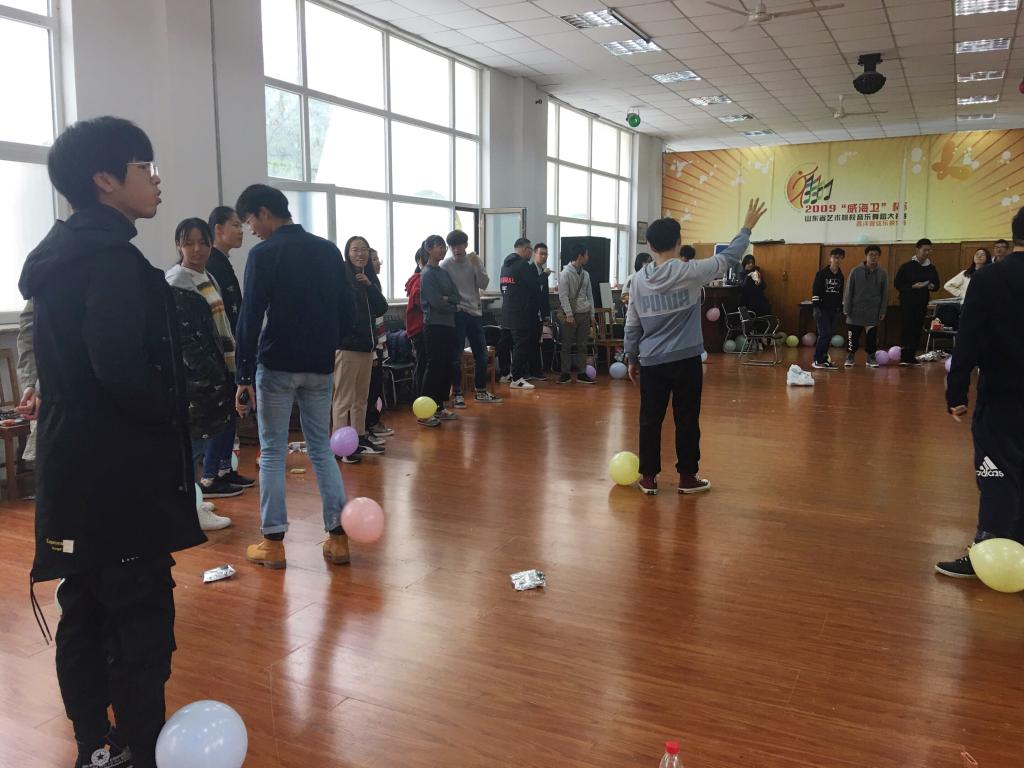 活动伊始,心理委员贾皓翔的暖场节目吉他弹唱活跃了活动气氛,为接下来的游戏环节顺利进行奠定了基础。游戏环节分为四个部分,第一部分“找钱游戏”增加了同学间的互动,拉近彼此间的距离;接下来的“自我介绍版心脏病”游戏不仅让同学之间有了更加深刻的了解,更使现场气氛达到高潮;第三部分简单游戏“报三”,缓解了上一场游戏的紧张气氛,简单小节目也使同学们更加了解彼此;最后“踩气球”游戏让同学们在活动中加深彼此的了解,增进友谊。活动在温馨欢快的氛围中落下帷幕。