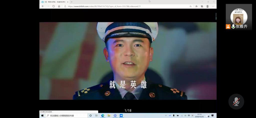 本站讯 2020年10月26日下午,2019级统计一班通过腾讯会议举以“消防安全知识学习”主题团日活动。活动由团支书张雅齐主持,全体同学参加了活动。