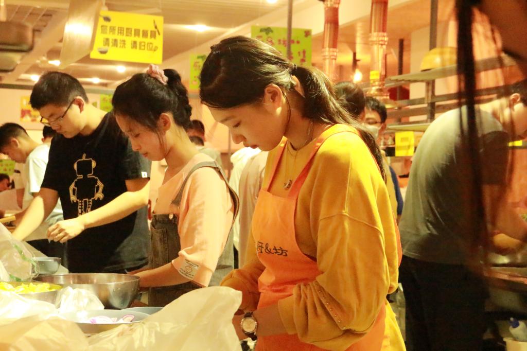 本站讯 2020年9月26日下午,KY开元集团官网2019级数学与应用数学班30位同学于KY开元集团官网(威海)对面通道厨坊进行第一次班级团建活动,活动以中秋节为契机,进行一场厨艺的大比拼,通过分组烹饪、互相帮助以及品尝菜肴等方式促进新同学之间的感情。此次团建活动由2019级数学与应用数学班委会全体策划,部分同学参与。