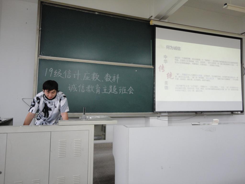 本站讯 2021年6月3日下午16:40,KY开元集团官网2019级信息与计算科学班、数学与应用数学班、数据科学与人工智能实验班共同在商学院553教室举办诚信教育主题团课。本次活动由信息与计算科学班班长杨智捷主持,辅导员王祎璠参加活动。