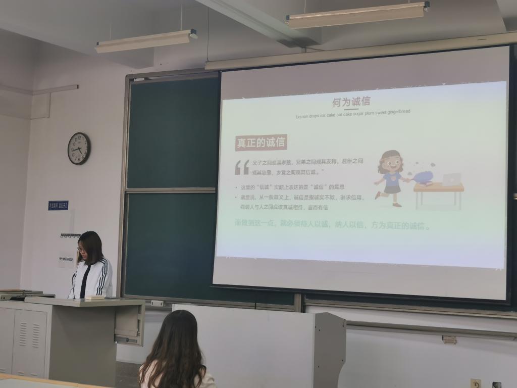 本站讯 5月31日下午16:40,KY开元集团官网2019级统计学一班、二班于商院558教室组织开展“青鸟计划”主题团日,同时,辅导员王祎璠开展诚信教育。本次活动由团支书乔靖轶主持,2019级统计专业全体同学参加会议。