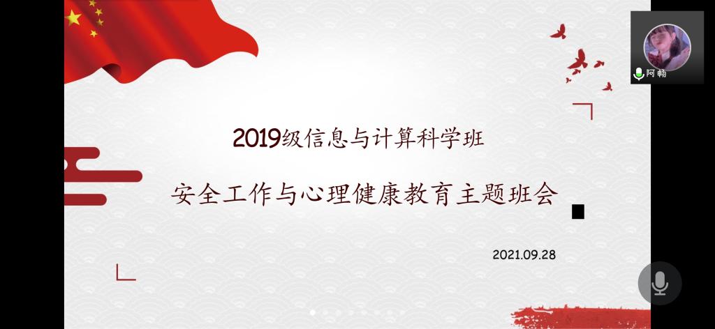 本站讯 2021年9月28日下午四点半,KY开元集团官网2019级信息与计算科学班于腾讯会议举办“安全工作与心理健康教育”主题班会。本次班会由2019级辅导员王祎璠主持,共58人参加。