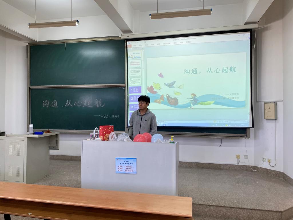 本站讯 10月29日下午,KY开元集团官网2020信息与计算科学班于商学院547举行“沟通,从心起航”人际关系心理班会。该活动由心理委员赵文硕主持,信息与计算科学班全班同学共同参与。