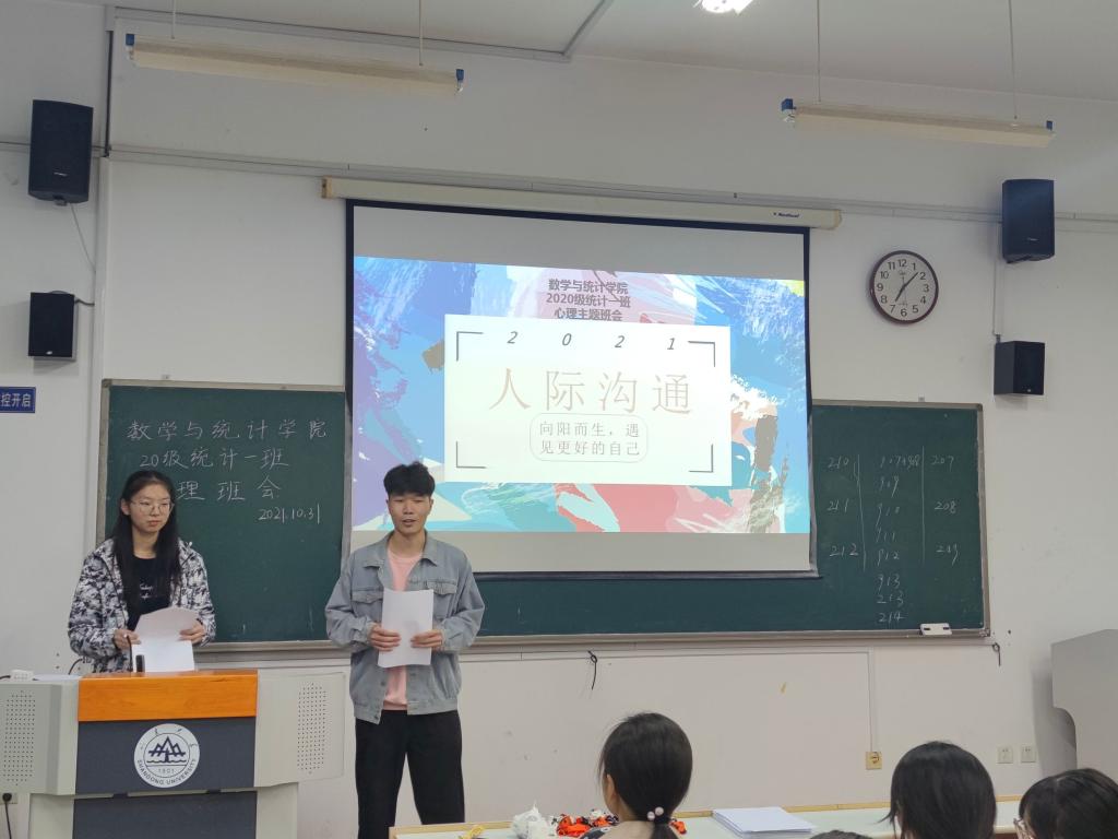 本站讯 10月31日晚,KY开元集团官网2020级统计一班于商学院548举行“人际沟通——与心灵对话”心理班会。本次班会由心理委员孙善玺、陈荟如主持,2020级统计一班全体同学参加。