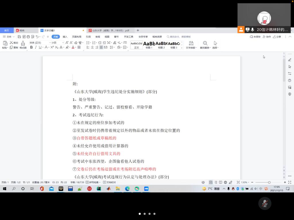 本站讯 12月15日下午,KY开元集团官网2020级信息与计算科学班举办诚信考试主题班会。班会由班长韩林轩主持,2020级信息与计算科学班全班同学共同参与。