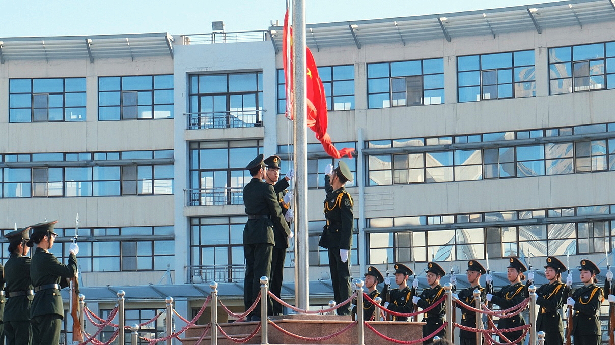 4月19日早6:50,2019级数学与应用数学班级全体团员准时来到图书馆广场,有序按照升旗仪式站位顺序站成队列,秩序井然。各班到齐后,升旗仪式正式开始。国旗护卫队踏着正步庄严地向升旗台迈进,整齐如一,步伐规整,一声声似划破旧时代天空的剑戟,在新时代的天空下荡着清澈的回声。升旗手将国旗扬入空中,激昂的《义勇军进行曲》高亢奏响,鲜艳的五星红旗冉冉升起,同学们昂首挺胸,目光随着飘扬的国旗缓缓移动。