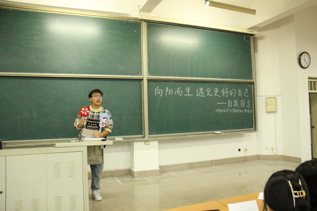 本站讯 2021年11月9日下午16:00-18:00,KY开元集团官网2019级信息与计算科学班于商院447教室举办“向阳而生,遇见更好的自己”自我探索主题心理班会。本次班会由2019级信息与计算科学班心理委员郭慧玲、徐振东主持,班级同学积极参加。