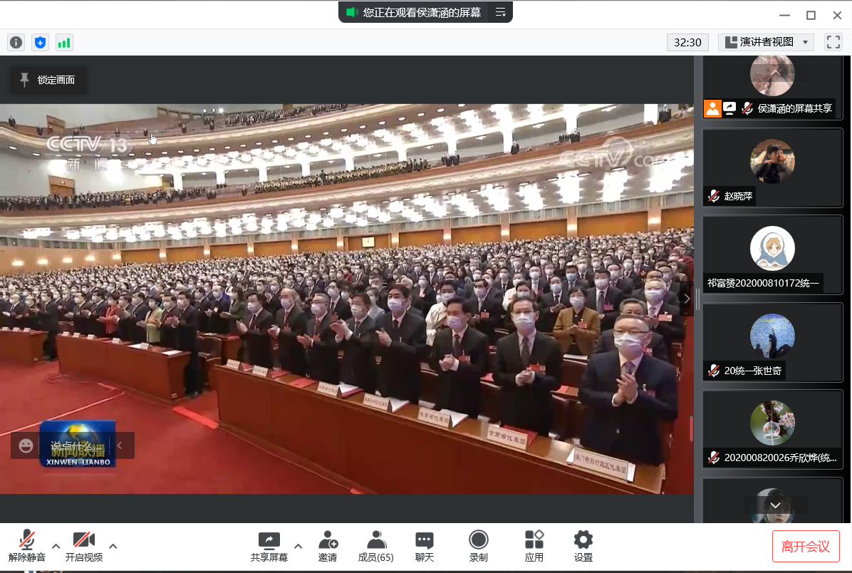 本站讯 3月25日下午,2020级统计一班开展“青春聚力共战‘疫’,团心向党话担当”特别主题团日。此次主题团日由团支书侯潇涵主持,全班67名团员参加。近日新冠病毒突袭威海,疫情防控形势异常严峻,为贯彻校区要求,引领凝聚团员青年落实威海市和校区各项疫情防控措施,本次主题团日活动以“青春聚力共战‘疫’,团心向党话担当”为主题,意在带领同学们学习疫情防控线上专题学习教育和提高同学们防疫意识。