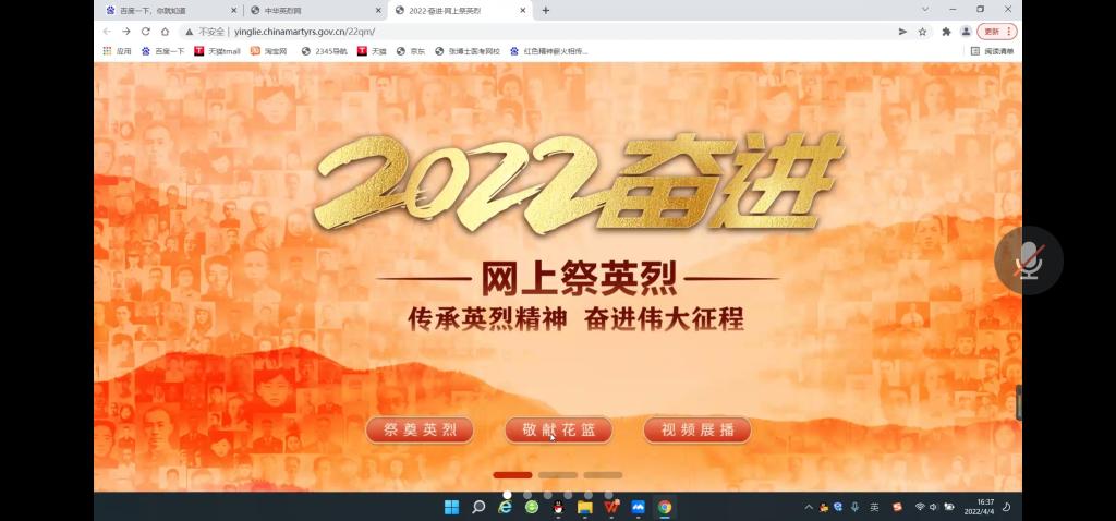清明节是中国人民祭奠祖先、缅怀先人的节日,也是中华民族认祖归宗的纽带。活动伊始,吕发安向大家展示《烈士褒扬条例》并讲解了“英雄烈士”的定义后,讲述了我国著名英雄烈士黄继光、邱少云以及刘胡兰三位同志的英勇故事。由于疫情无法进行集体扫墓活动,吕发安带领同学们进入中华英烈网祭奠英烈,输入烈士名字进行搜索,点击“鞠躬”、“献花”、“上香”等进行祭扫,可以通过留言表达自己对烈士们想说的话,也可以在“视频展播”栏目中进行学习。同学们都积极进行线上祭英烈活动,缅怀先烈。