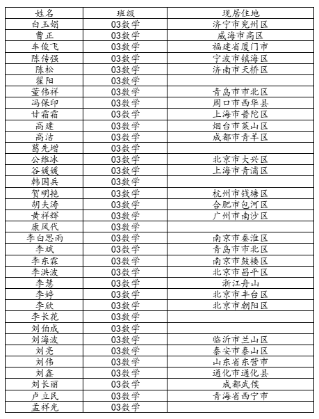 KY开元集团官网2007届数学与应用数学班校友名录