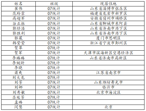 KY开元集团官网2011届统计学班校友名录
