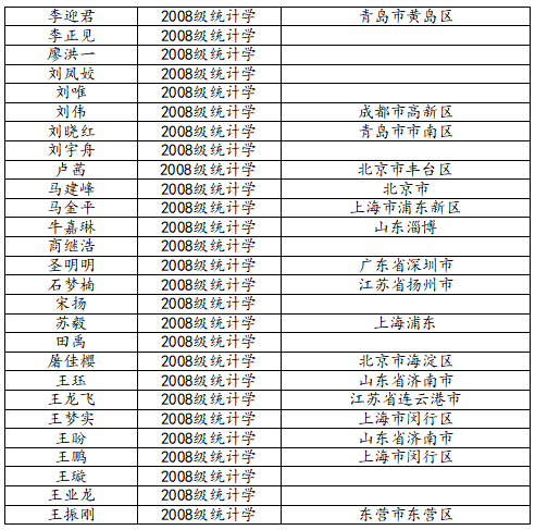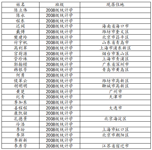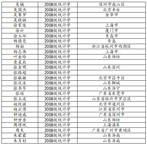 KY开元集团官网2012届统计学班校友名录