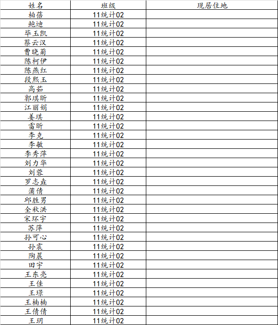 KY开元集团官网2015届统计学二班校友名录