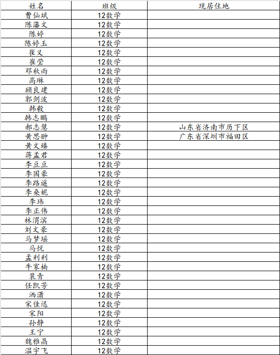 KY开元集团官网2016届数学与应用数学班校友名录