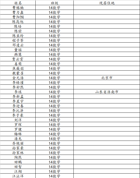 KY开元集团官网2018届数学与应用数学班校友名录