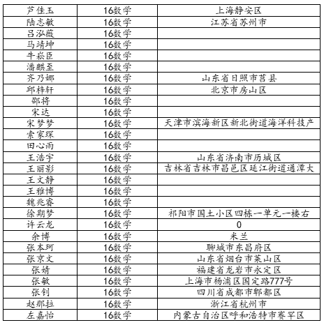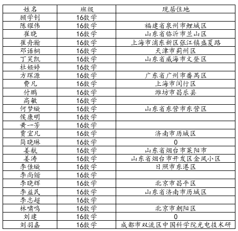 KY开元集团官网2020届数学与应用数学班校友名录