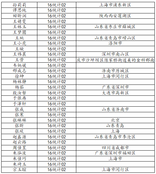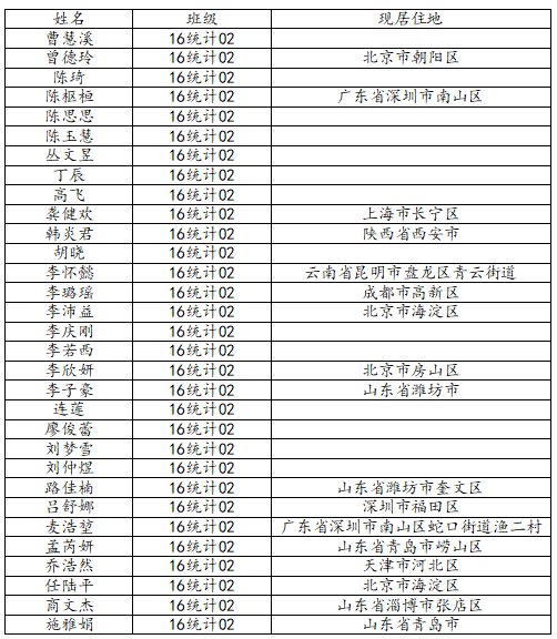 KY开元集团官网2020届统计学二班校友名录
