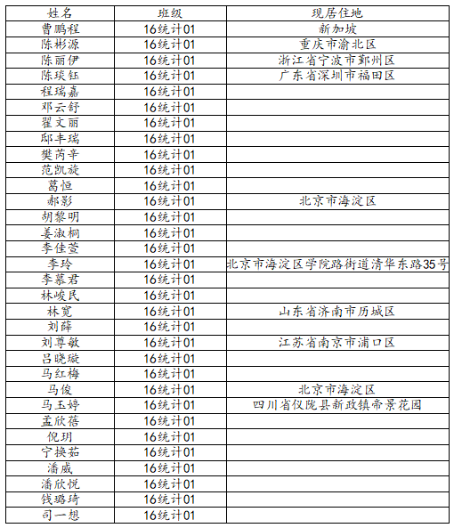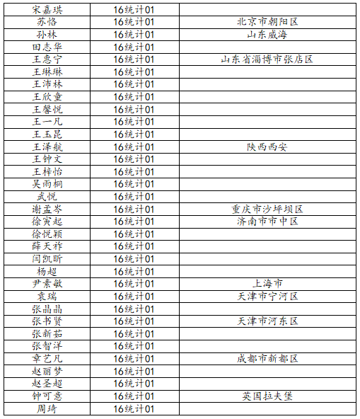KY开元集团官网2020届统计学一班校友名录