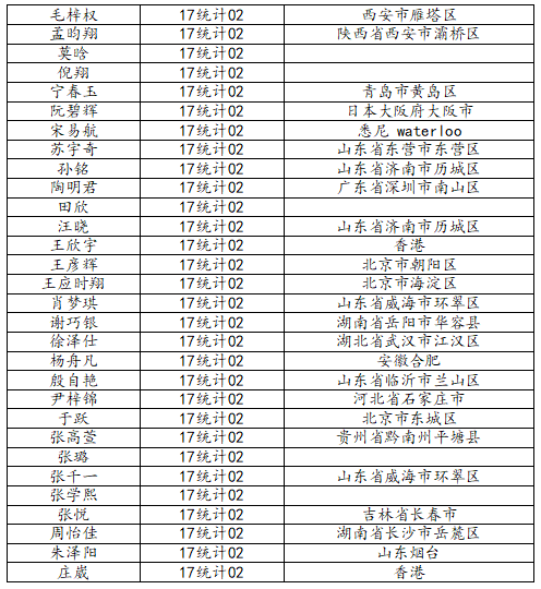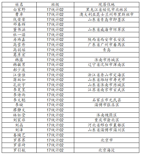 KY开元集团官网2021届统计学二班校友名录