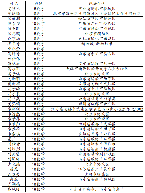 KY开元集团官网2022届数学与应用数学班校友名录
