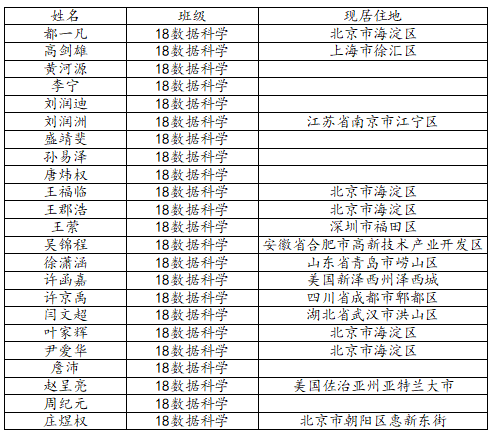 KY开元集团官网2022届统计学(数据科学与人工智能实验班)校友名录