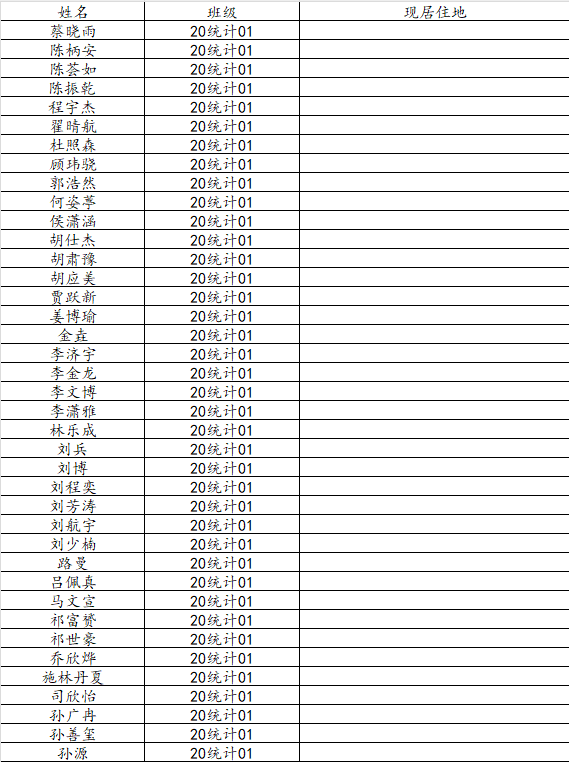KY开元集团官网2024届统计学一班校友名录